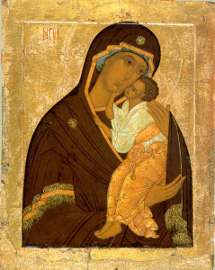 К Богородице прилежно ныне притецем, грешнии и смиреннии, и припадем, в покаянии зовуще из глубины души: Владычице, помози, на ны милосердовавши: потщися, погибаем от множества прегрешений, не отврати Твоя рабы тщи, Тя бо и едину надежду имамы.