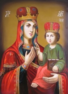 Рассказывают, что некий украинский крестьянин косил траву и рассек образ Божией Матери косой пополам… Осознав, что его поступок, пусть и не преднамеренный, страшен для него и для окружающих, человек поднял две половины иконы, с благоговением поместил у себя в молитвенном углу, зажег перед нею свечу, а утром обрел икону целой, остался лишь тонкий след от рассечения.